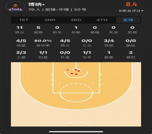76人41号秀 阿德姆-博纳 登场17.5分钟