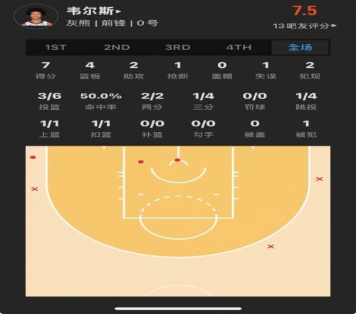 灰熊39号秀 杰伦-韦尔斯 登场21.4分钟