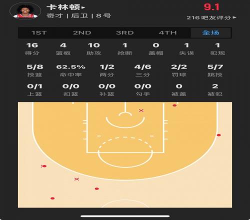 奇才14号秀 卡尔顿-卡林顿 登场35.5分钟