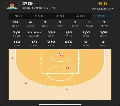 黄蜂6号秀 提贾尼-萨隆 登场21.5分钟