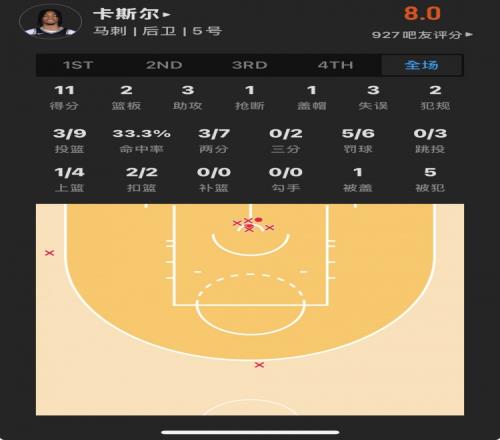 马刺4号秀 斯蒂芬-卡斯尔 登场20.2分钟