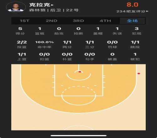 森林狼23年53号秀 杰伦-克拉克 登场21.9分钟
