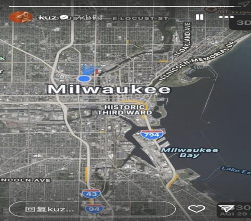 今日,凯尔-库兹马更新ins,晒图抵达密尔沃基。