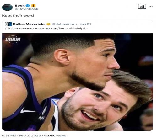 独行侠官方昨天说最后一次用东契奇凝望照!布克回怼:挺遵守诺言
