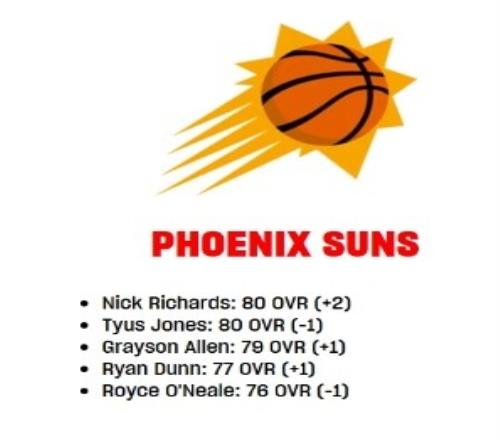 体育资讯1月31日报道宣称 NBA2K本周更新,太阳队内球员的能力值有所变化,新援理查兹由78上涨至80。