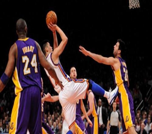 新华社照片,路透,2012年2月11日,尼克斯队球员林书豪(下)庆祝胜利。当日,在2011-2012赛季NBA常规赛中,纽约尼克斯队主场以92比85战胜洛杉矶湖人队。 新华社/路透