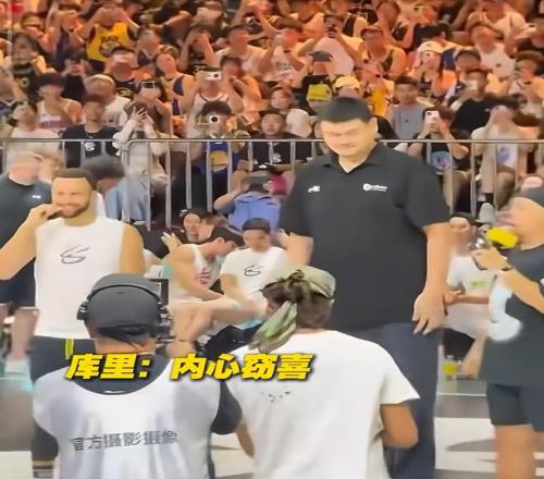 笑喷库里中国行与姚明梦幻同框,1米88傻库当着2米26姚主席秀肌肉