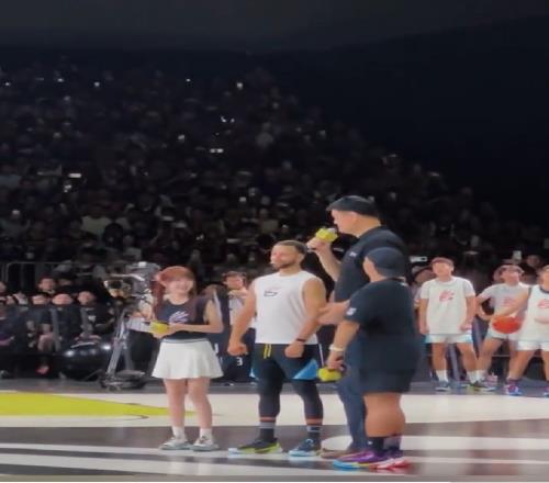 8月20日,重庆国博中心,“库中锋”和姚中锋世纪同框,神秘嘉宾姚明惊喜空降,现场球迷热情欢呼!