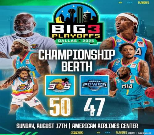 最终,迈阿密305以50-47险胜达拉斯POWER成功杀入冠军赛。据悉,迈阿密305的冠军赛对手将是拥有蒙特雷兹哈雷尔、阿米尔约翰逊等老熟人的芝加哥TRIPLETS队。毫无疑问,BIG3冠军赛又将是一场不可多得的对攻大战!