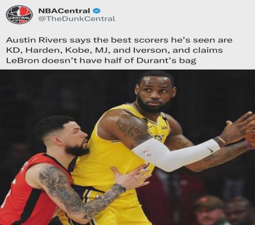 “例如,勒布朗的总得分超过了杜兰特,但杜兰特能用更多样的方式得分。你可以争辩,但事实就是如此。勒布朗的进攻手段不及杜兰特的一半。我会说,杜兰特、卡梅罗、科比、乔丹和艾弗森是我见过的最出色的得分手。”
