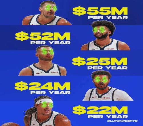 这五名球员加起来的年薪高达1.78亿美元,掘金也算大手笔了,他们的目标还是冲击总冠军。