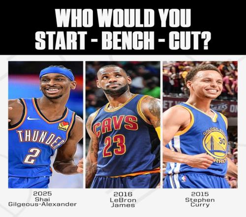 在2025亚历山大、2016詹姆斯、2015库里中,香波特表示:“先发老詹。Shai要替补,但是我们爱你;斯蒂芬,那年你击败了我,所以裁掉你!”