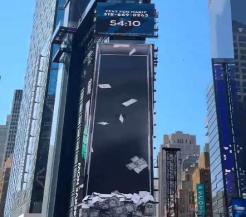 《惊天魔盗团3》在时代广场广告大屏现场直播还真给观众发钱