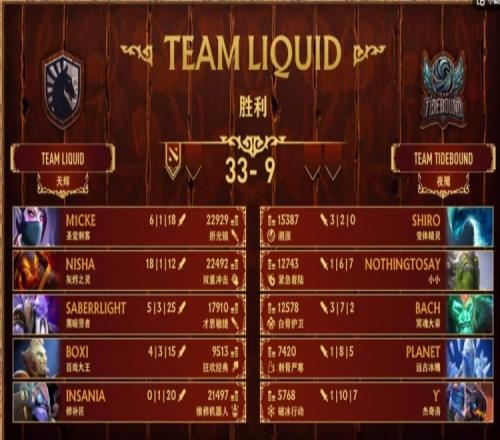 发育双核难挡Liquid中期攻势Nisha火猫超神带队TBD输首局