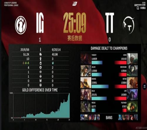 首局比赛TheShy一选塞恩!iG在小龙和巢虫团获胜之后拿下优势!中期TT想强抓人虽然有所收获,但是代价是Rookie沙皇单带持续发育无人可挡!关键的先锋团RK沙皇推四个帮助GALA霞收割,随后iG再拿灭尽厄塔汗追击击杀TT四人拉开优势!Beichuan斯卡纳团战毫无存在感!iG继续给压力,高地团1xn卡莎开飞想收塞恩直接被Q击飞白给!iG团灭TT,大龙都不需要拿了!25分钟结束首局的比赛!