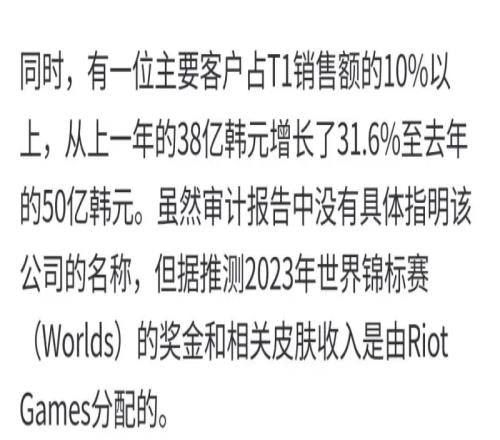 体育资讯4月6日报道宣称 近日,韩媒发文根据SKT T1的2024年审计报告显示,T1俱乐部在2024年营收达490亿韩元(约2.45亿),同比增长 49.4%。营业亏损从2023年的120亿韩元(约5988万)收窄至88亿韩元(约4391万)。