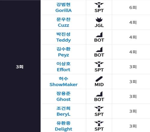 其次冠军最多的为Peanut,10次打入LCK决赛,并捧起了7座冠军奖杯;而曾效力过LPL赛区的Khan选手一共6次打入LCK决赛,每一次都能夺得联赛冠军;Chovy选手目前也是10次打入LCK决赛,但仅捧起4座冠军奖杯。
