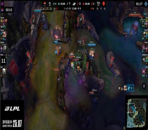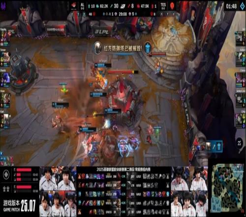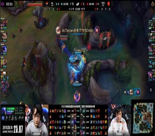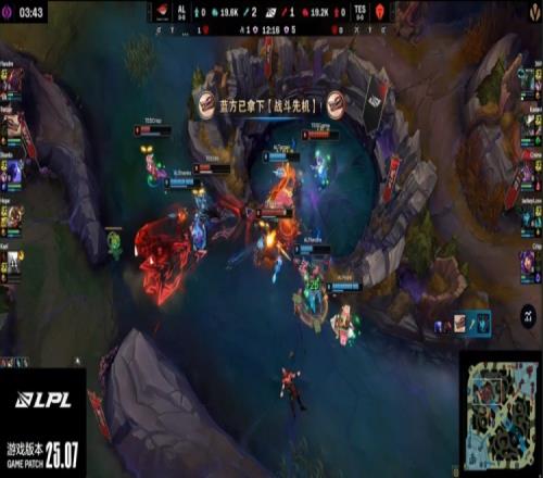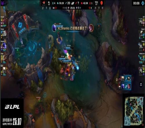 【25:12】369偷AL红buff被抓,TES众人支援到位,但Flandre吃掉369人头,AL打出1换4。