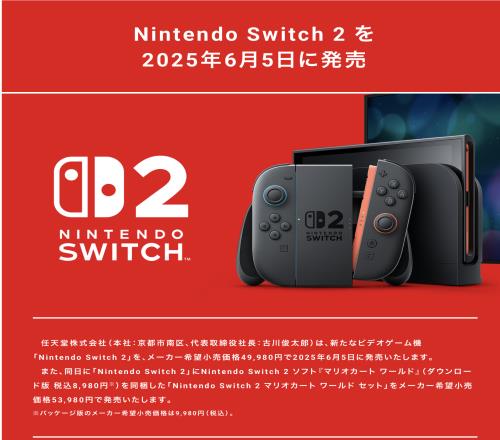 Switch2售价公布:日版49980日元国际版69980日元,约3400人民币