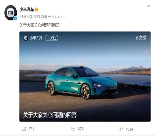 小米汽车官方在社交媒体上公布对部分问题的解答,具体原文如下: