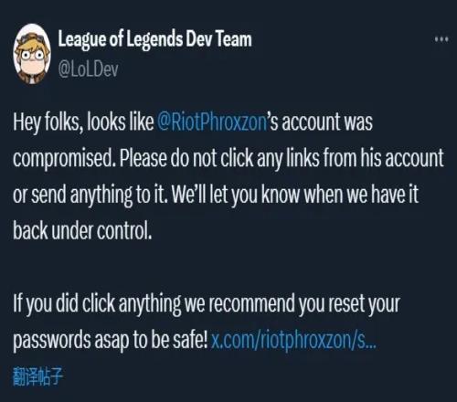 而随后LOL设计团队的官方账号表示Phroxzon的账号已经被盗,请大家不要点击原贴的链接以避免财产损失。