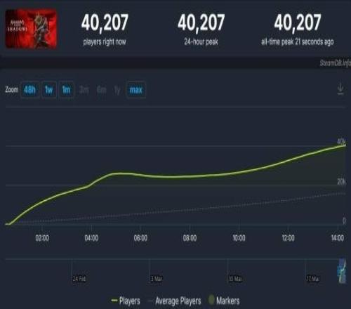 《刺客信条影》Steam在线峰值破4万:超越《幻景》和《英灵殿》!