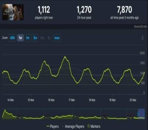 作为对比,两部前作《刺客信条:幻景》和《刺客信条:英灵殿》的Steam在线峰值分别是7870人和15679人。