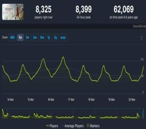《刺客信条:奥德赛》是AC系列人气最高的游戏之一,其Steam历史在线峰值为62069人。你认为《刺客信条:影》是否超越这部2018年的作品呢?