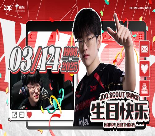 体育资讯3月14日报道宣称 今日是JDG中单Scout的生日,JDG也更新微博为Scout送上生日祝福。