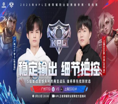 体育资讯3月13日报道宣称 2025KPL春季赛今日第二场比赛是由广州TTG对阵到上海EDG.M!