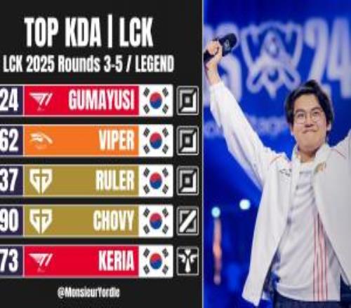 体育资讯8月11日报道宣称 今日韩媒放出LCK 2025 Rounds 3-5 传奇组的选手KDA排行榜,Guma第三赛段KDA8.24位列LCK第一,Viper、Ruler分居二三。