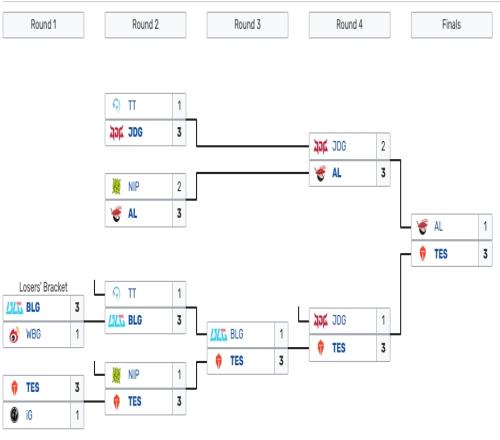 败者组首轮TESvsiG(100w),败者组第三轮BLGvsTES(175w),败者组决赛TESvsJDG(103w),总决赛TESvsAL(111w)。