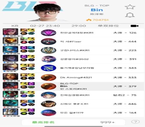 而根据韩服数据显示就在刚刚Bin开始了韩服排位,选用了一把剑魔上单;目前该对局暂未结束。