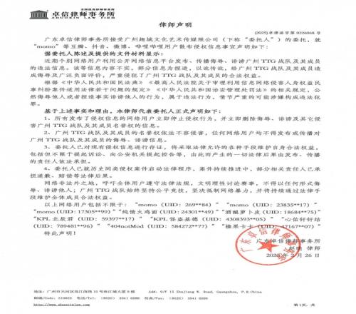 TTG官方发布律师声明:将持续监测严惩网络上造谣诽谤选手的用户