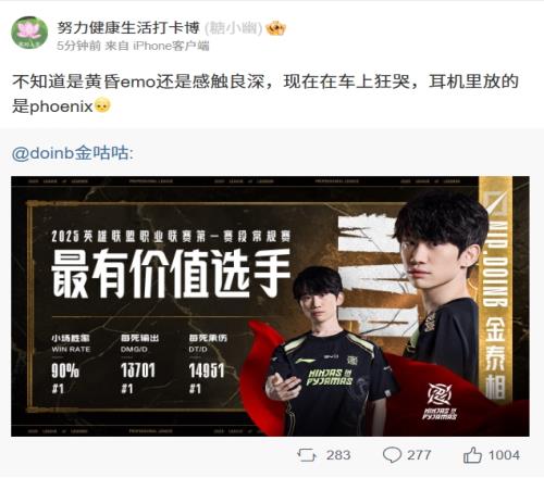 注意补水!糖小幽谈Doinb获MVP:在车上狂哭,耳机里放的是phoenix