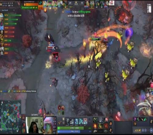 【22分钟】先是Noone大圣上路单杀Emo帕克,后是Satanic小娜迦下路带队网住Zeal钢背兽,钢背兽腹背受敌倒地,小娜迦双杀,随后一路推进。