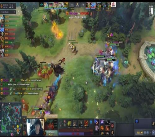 【20分钟】Zeal钢背兽下路被捉,Noone大圣连着跳树下地开猴阵留人,Boboka蝙蝠拉人没有输出,发条入场留人自己被留,大圣一波三杀,打穿YB。PARI赢团打肉山,小娜迦带盾。
