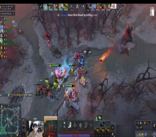 【0分钟】上路Satanic小娜迦带着9Class海民封路留人,Ame狼人被留送出一血。