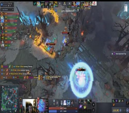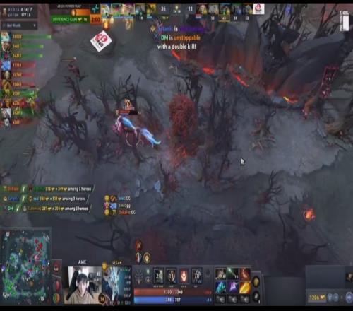 【16分钟】上路DM恐怖利刃出到紫苑,Emo帕克入场动手的时候被紫苑留下,Tianming发条救人也被困大圣猴阵,两人双双阵亡,同时下路Satanic小娜迦开大招留Ame狼人,完成单杀,YB一波双核倒地,经济落后4K。