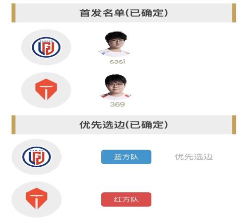 TESvsLGD出线生死战首发:双方全主力,369出战Solo选边交手Sasi