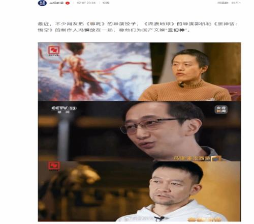 央视认证!盛赞《流浪地球》郭帆、《哪吒》饺子和《黑神话》冯骥为"国产文娱三幻神"