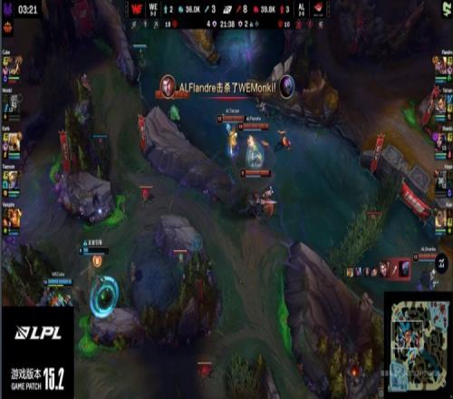 【21:34】Monki贾克斯河道跳脸单切积分王杰,但AL四人支援到位将其补掉。