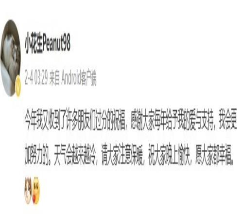 Peanut发文:感谢大家每年给予我的爱与支持,愿大家都幸福!