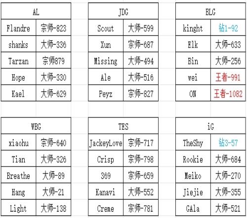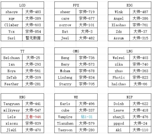 截止发稿前,LPL所有首发选手中仅3人韩服段位打上王者,分别是BLG打野Wei、辅助ON以及RNG辅助Lele;而有3人韩服段位还在钻石,分别是BLG中单knight、iG上单TheShy,以及WE辅助Vampire,其中TheShy由于长时间为进行排位,账号段位显示为钻3!