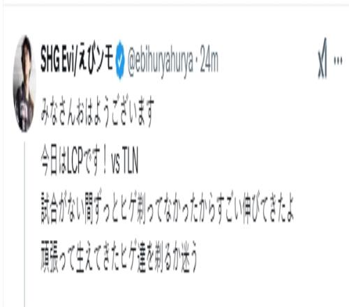 队内上单Evi在社媒晒出了自己的自拍,他表示自己正在决定是否要刮掉自己留了多日的胡须。