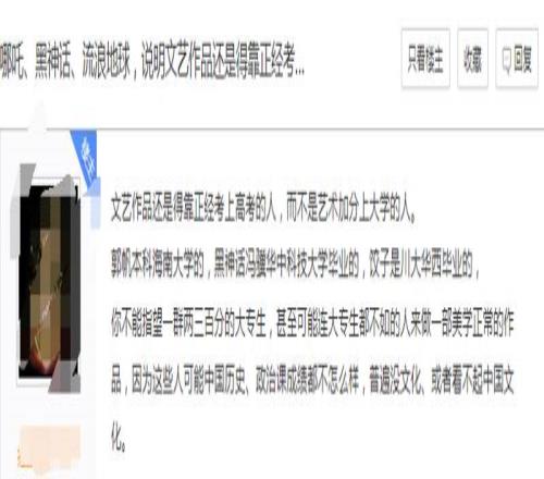 贴吧上有网友指出,郭帆本科是海南大学的,冯骥是华中科技大学毕业的,饺子是川大华西毕业的,这说明文艺作品还是得靠正经通过高考的人创作,而不是艺术加分上大学的人。这种观点引发网友热烈讨论。