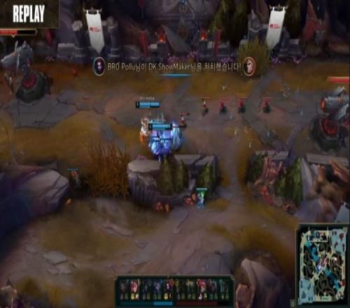 【6:38】巢虫团,Pollu蜘蛛河道残血吊钢丝,Siwoo奎桑提侧面包夹将其带走,随后许秀乌鸦河道被Hype艾希一箭击中阵亡。