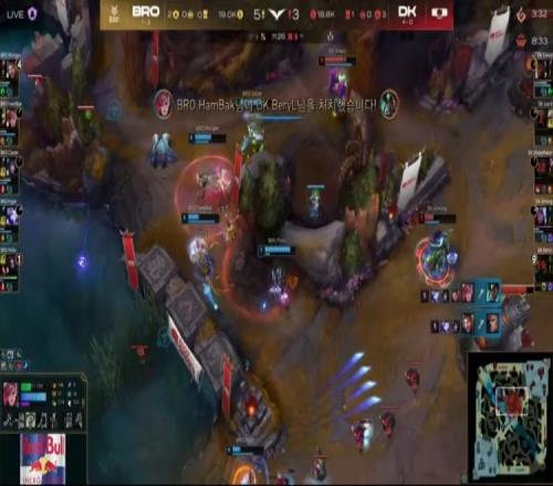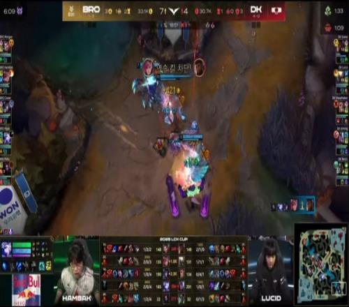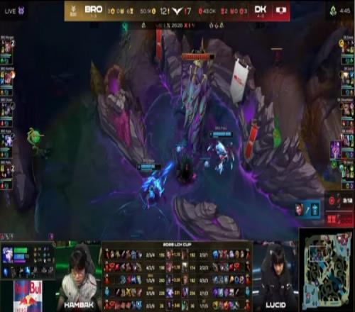 【22:25】HamBak蔚眼上蹲被DK三人围剿致死,DK随后强开厄塔汗,Siwoo奎桑提被卖,Lucid拿到渴血厄塔汗,DK三人没能走掉均被BRO打掉复活甲。