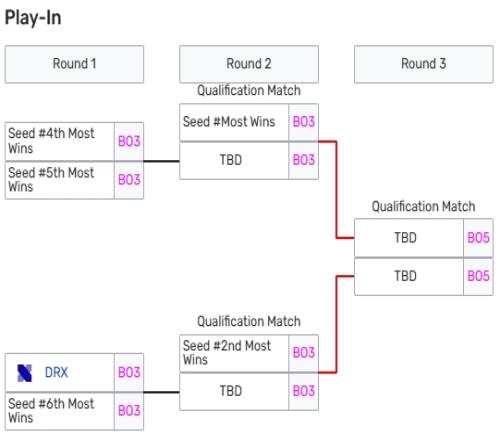 入围赛前两轮赛程为Bo3,第三轮为Bo5,前三将晋级季后赛。