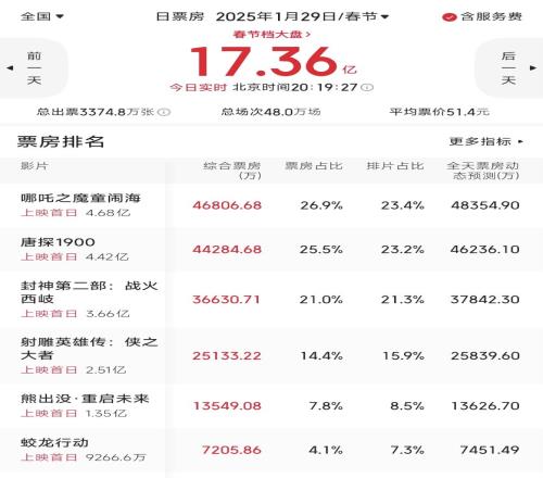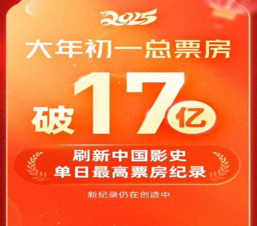 刷新中国影史单日最高票房纪录2025大年初一总票房已达17.36亿